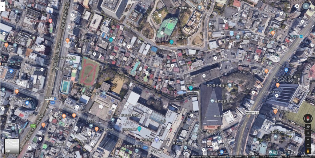 ・外務省外交史料館、霊友会の釈迦殿、西久保八幡神社は含まれない